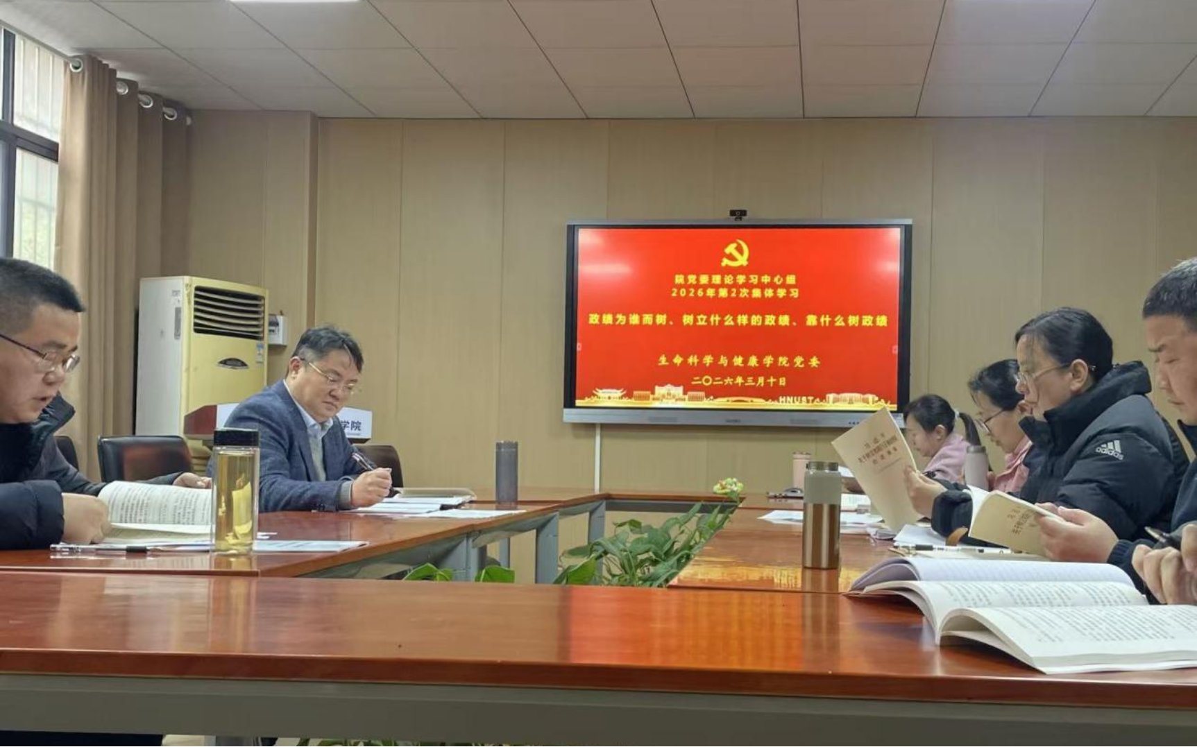 3月10日下午,yl23411永利集团官网党委理论学习中心组在生物楼110举行2026年第二次集体学习(扩大)会,深入学习贯彻习近平总书记关于树立和践行正确政绩观的重要论述精神,传达落实中央、省委党的建设工作领导小组会议精神。院党委书记龙赢主持会议并作总结发言,学院党委理论学习中心组成员、三办主任、教工党支部书记、组织员参加学习。