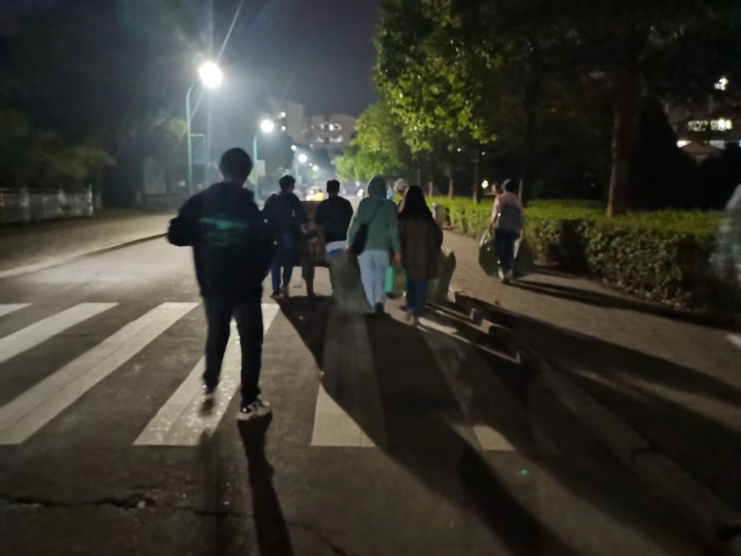 大家于美术楼前分好组后由各组组长带领前往所负责的楼区,他们敲门、询问、回收、感谢,一套动作如行云流水,既礼貌又能干。整个过程中,大家协调配合,在自己任务完成之后积极帮助其他组员。回收完毕之后,大家于美术楼前集合并将“战利品”汇总,淅淅沥沥的小雨丝毫没有影响大家的热情,最后大家齐心协力将废品运送到回收站。