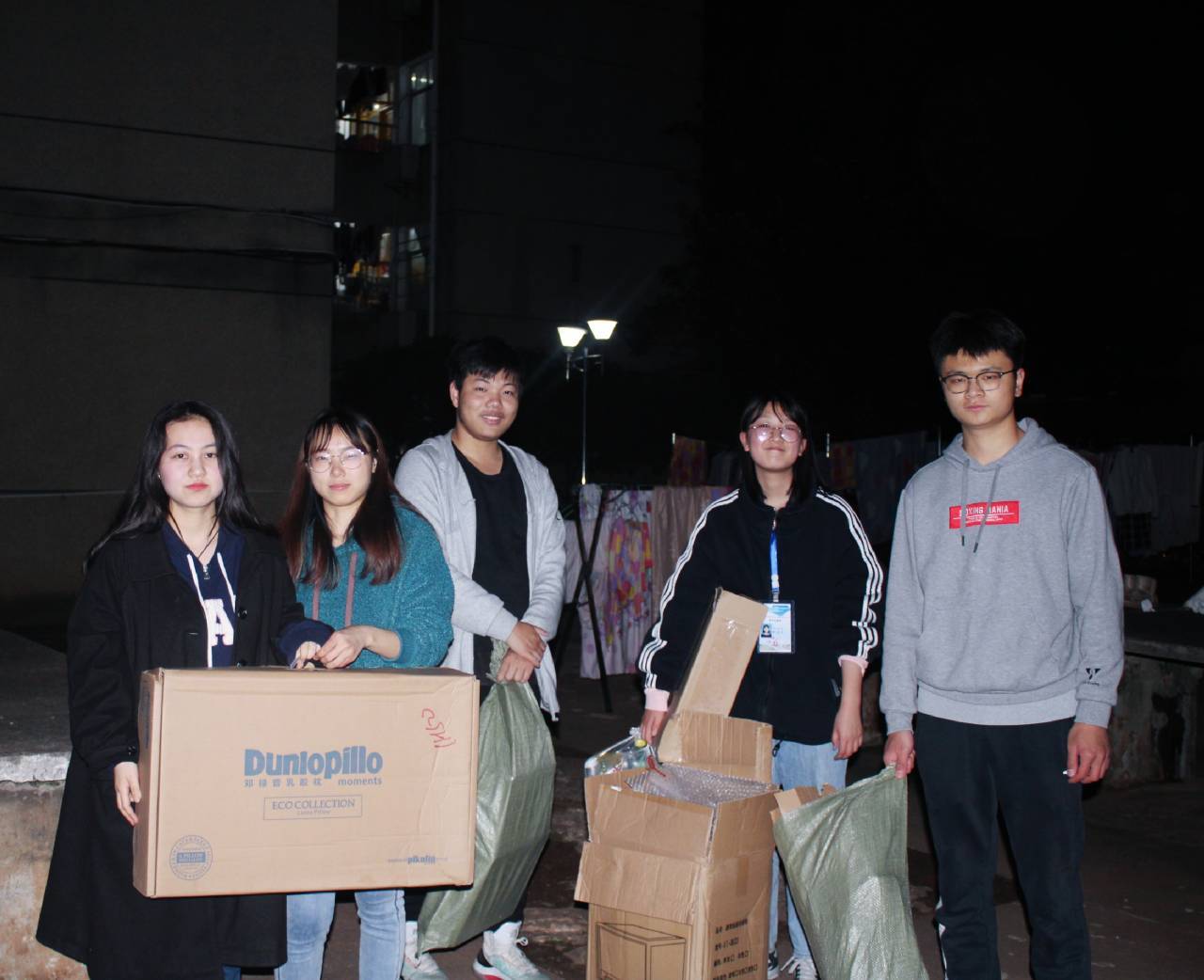 拍完合照后,各小组成员及组长去到学校的五、六、七、八区的各个寝室进行绿色回收同学们看到了志愿者们后,纷纷热情地捐出寝室里面的水瓶、纸盒和闲置的书本,为绿色回收助一份力。