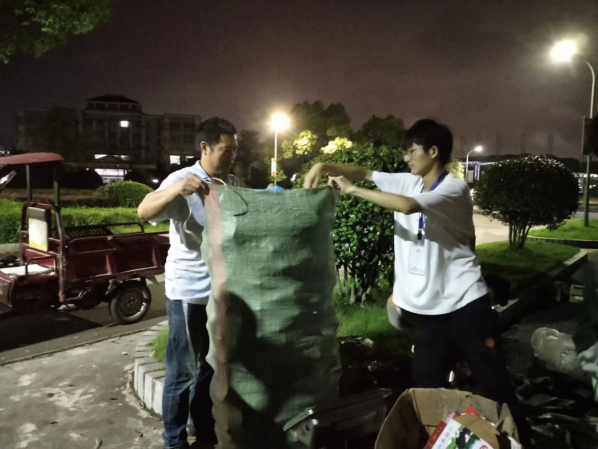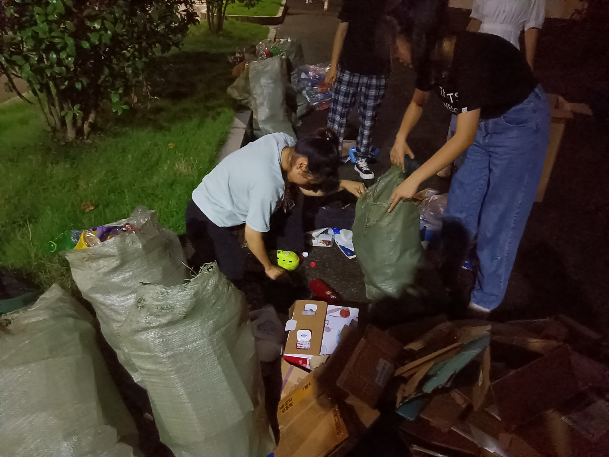 晚上七点半,志愿者们早早的在美术楼前集合,分好小组。绿色回收活动在五区、六区、七区和八区的部分寝室进行开展,合影留念后,志愿者们在负责人的带领下按照各分配的区域开始了浩浩荡荡的下寝回收之旅。