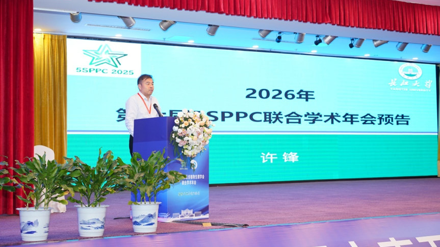 闭幕式最后,下一届会议承办方长江大学副校长许锋教授进行了“第七届中南五省植物生理学会联合学术年会(5SPPC 2026)”的预告。肖浪涛教授与蔡强教授分别代表湖南省植物生理与分子生物学学会和湖北省植物生理与分子生物学学会完成了5SPPC会旗的交接仪式。