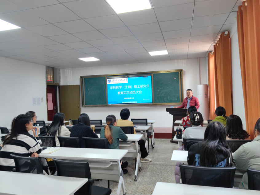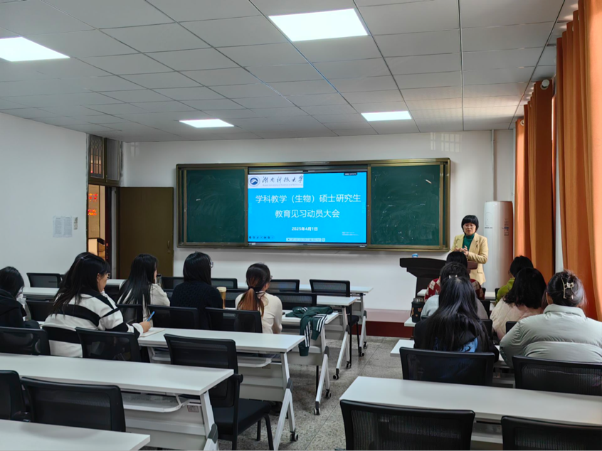 下午15:00,yl23411永利集团官网召开学科教学(生物)专业硕士研究生教育见习动员大会。学位点负责人彭喜旭教授详细部署见习任务,提出本次见习的目的、安排及其他注意事项。她强调指出同学们要认真学习一线教师的教学模式和提问技巧,并认真总结见习过程中的经验与成果。