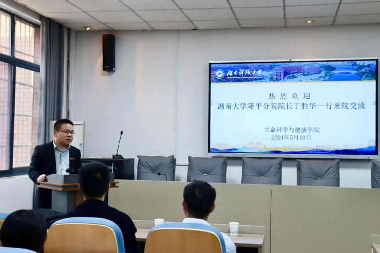 首先,周定港向我们介绍了隆平分院近期的研究成果,并向我们隆重介绍了丁胜华教授的成就。随后,丁胜华简要介绍隆平分院的历史、规模、师资力量、教学设施等情况,展示学院的整体实力。对于专业特色方面的介绍,院长详细讲述了隆平分院的专业设置、特色课程、研究方向以及取得的成果,特别是那些在学术界和社会上有一定影响力的成果;对于该院的学生生活方面,丁胜华展示了隆平分院的学生活动、实验室生活、校园文化等,让yl23411永利集团官网在场学生了解了在隆平分院学习的日常生活和氛围。
