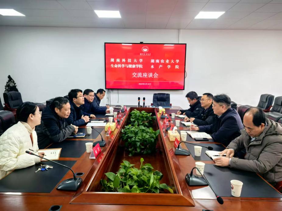 为贯彻落实学校"走出去、跑起来、见成效"精神和推动学科建设,2025年1-2月,yl23411永利集团官网领导班子带头赴湖南师范大学、湖南农业大学、湖南省水产科学研究所、湘潭市农业科学研究所等单位进行考察交流。陈宇顺院长、龙赢书记、周定港副院长和孙远东教授等一同参加。通过实地走访、专题研讨等形式,学院与兄弟单位在学科建设、科研合作和人才培养等方面将不断深化合作,共谋发展。尤其将在国家和省部级重点项目联合申报、博士研究生联合培养、科研平台资源共建共享等方面建立长效合作机制。