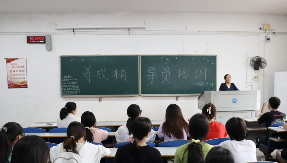随后,龙雪鸣在新生入学心理疏导方面提出了建议。一是她强调辅导员是新生在大学认识的第一个朋友,要扮演好这个角色,帮助新生尽快适应大学生活;二是她希望养成辅导员做一个好的倾听者,及时关注新生的心理问题。最后,舒艳总结迎新前期工作并对紧接着开展的后续工作进行了部署。她肯定了迎新宣传工作与军训前期准备工作完成优秀,后续军训工作蓄势待发。同时她再次提醒迎新工作者们一定要有安全意识,注意新生防诈、防骗和寝室安全等工作;特别强调大家要要具备耐心、热心和责任心,保持良善的言行举止,并关注学生的思想动态。