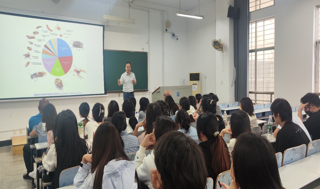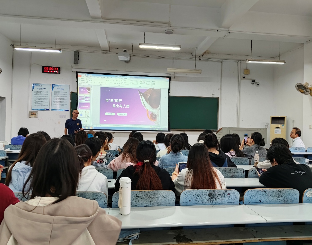 9月30日上午8:30,由学院承办的科技与人文大讲堂第93讲,围绕“与“虫”同行——昆虫与人类”主题在八教414开讲。本次讲座由梁飞扬老师主讲,生物科学系主任唐新科主持活动,学院师生代表到场观摩学习。