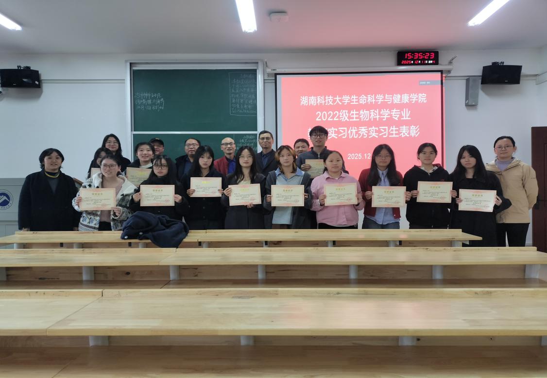 2025年12月11日14:00,2022级生物科学专业教育实习总结大会于知行楼B209教室准时召开。生物科学系系主任唐新科、各实习队指导教师及全体2022级生物科学专业学生参会,共同回顾为期10周的教育实践历程,总结成长收获,表彰先进典型。会议由唐新科主任主持。